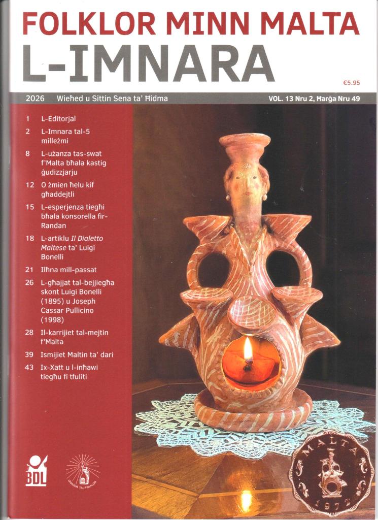 Għadu kemm ħareġ issa (Jannar 2026) il-perjodiku L-IMNARA … Nru. 49. Dalwaqt tkun f’idejn il-membri kollha tal-Għaqda tal-Folklor. Fiha kitba interessanti, waħda minnhom tista’ tkun anke xi scoop zgħir. Issibuha fil-ħwienet ewlenin, imma l-aktar fil-ħanut tal-BDL, San Ġwann.