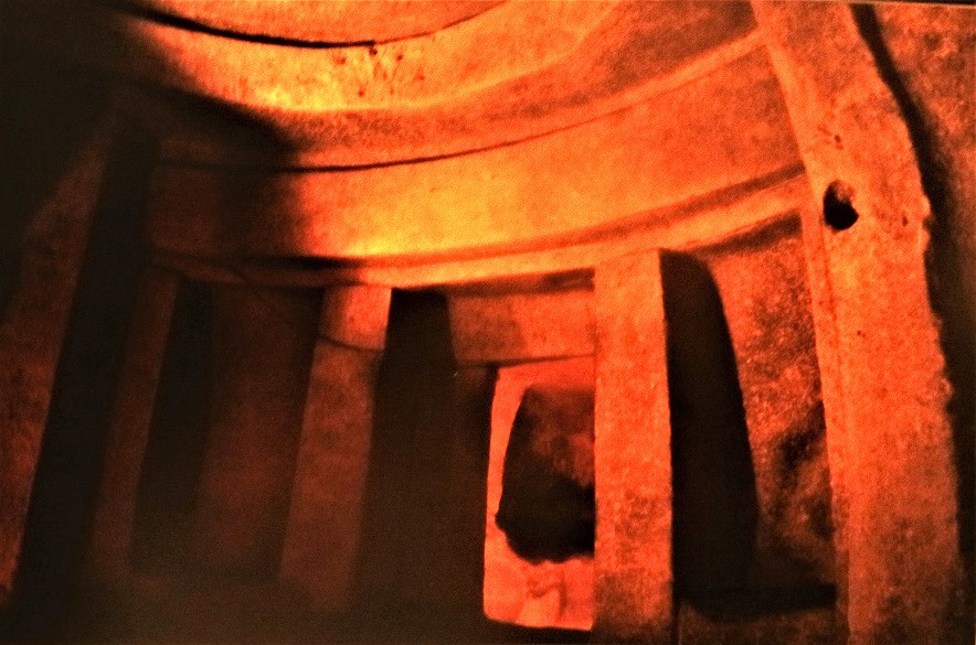 Together with the megalithic temples, the farming communities developed other shrines, this time, to bury their dead. The Xagħra Circle in Gozo and the Hypogeum in Paola were two such underground cemeteries that were dug out contemporaneously with the above ground temples. Both sites were dug out of the live rock and enlarged over time into numerous underground chambers. Inside the Hypogeum, a small sized ‘chapel’, similar in shape to the above ground temples was hewn out of the live rock. While the rituals held in the above ground temples were intended to propagate the growth of crops, the rituals held inside the Hypogeum were meant to ensure the well being of the defunct in their afterlife and possibly help propitiate their re-incarnation. The earth was thus regarded as a ‘mother’ and a ‘womb’ if you will, where from, following a gestation period, all plants, animals and humans were to be ‘reborn’.