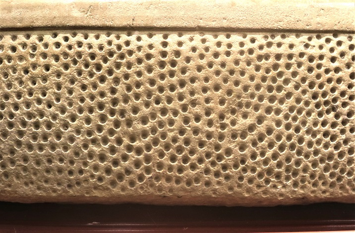 The predominant decorative designs discovered in the prehistoric temples of Malta are mainly of two types: the pittings – i.e. a multitude of tiny holes drilled side by side – that act as a decorative filler applied to a blank stone-block surface. These may have been mere decorations or else may have well held a symbolic meaning. Perhaps the tiny holes represent rain drops, or a profusion of seeds that were typically sown in the fields by farmers. In any case, this symbolic design on sacred stones was a way of propitiating a physical abundance of crops.