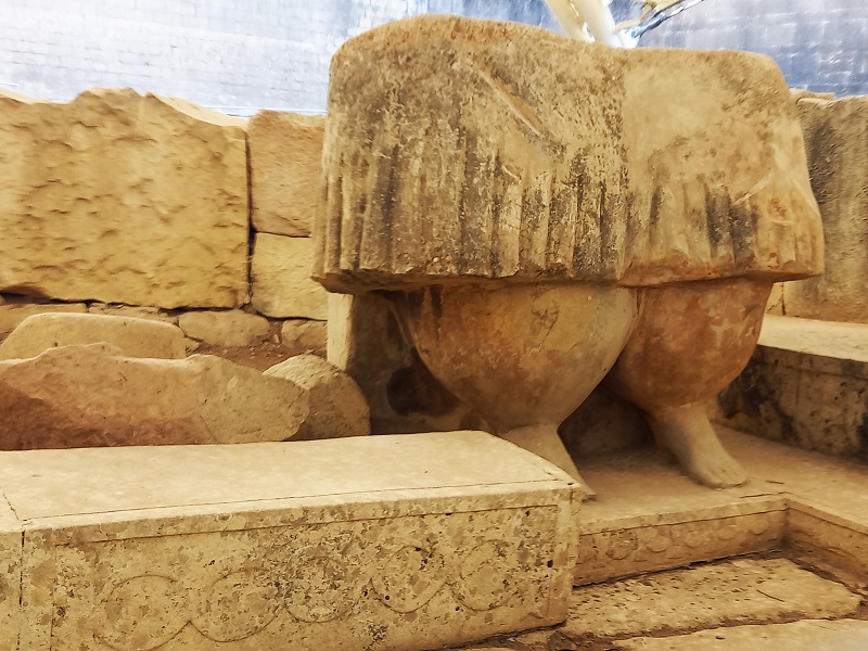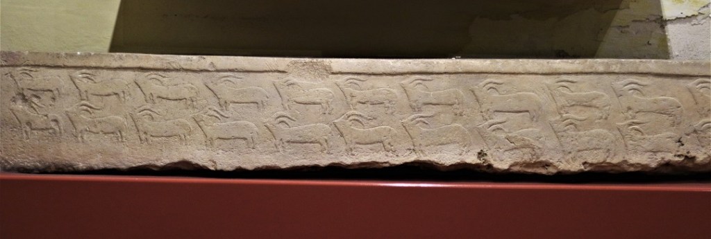 On one of the stone slabs in the same temple there are two bas reliefs. One depicts two rows of goats, 22 of them to be exact, the second relief chiselled on a similar stone slab shows four goats, one pig and one ram. While the first set may well have served as a decorative filler on an otherwise empty stone face, the second group indicates a precise number of sacrificial animals, purportedly ritually killed on one particular occasion.