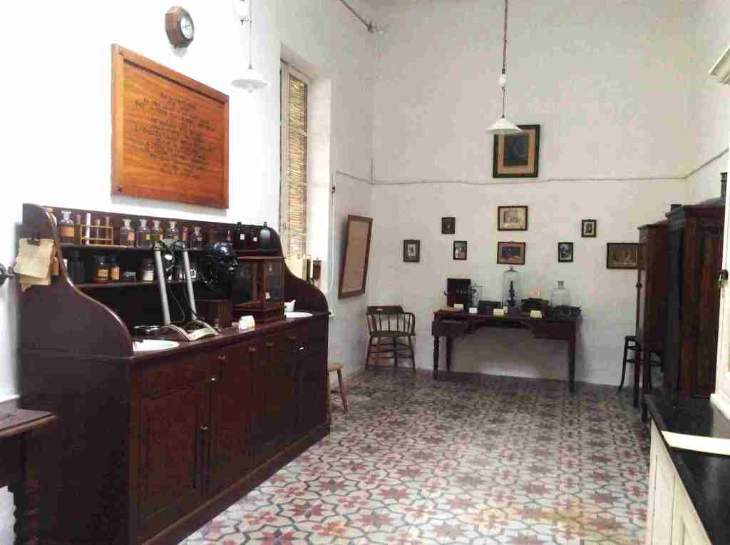 The laboratory inside the Ministry of Health, were Zammit carried out his experiments still exists to serve as a memento to the discovery and to honour the erudite scholar. The laboratory room contains a small writing desk with a black glass top, on which an old Bunsen burner, a microscope and an ink pot stand. Next to it are a mortar and pestle, test tubes and a hand driven centrifuge for two glasses. In the middle of the room a shelf holds glass containers full of chemicals. Old labels have hand written names: “Chloroform”, “Sulphuric acid”, or simply “Water”. Once, there were also files filled with calculations of tests resulting from Zammit’s experiments. Labels were written in pencil and underlined with red with the words, ‘Tube C shows abundant growth of M’.