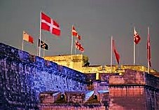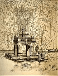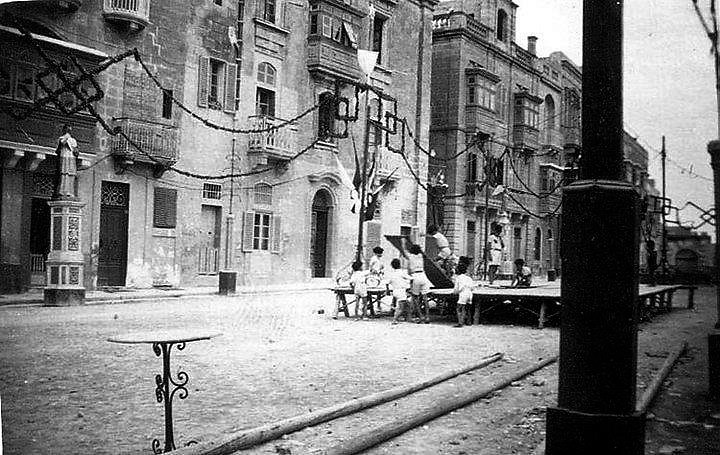 MACCHINA DEL FUOCHO Fi żmien l-Ordni ta’ San Ġwann, din kienet bħal arkata tal-injam għolja mal-għaxar metri li kienet tintrema’ biex fuqha jitqiegħdu l-maskli u b’hekk kien jittella’ l-logħob tan-nar minn fuqha.