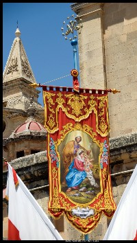 BANDALORA Tip ta’ bandiera kbira rettangolari, imtella’ vertikali, li tkun imdendla minn bastun orizzontali li jiddendel fuq l-ANTINJOLA.