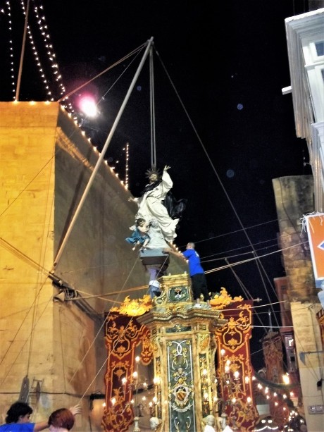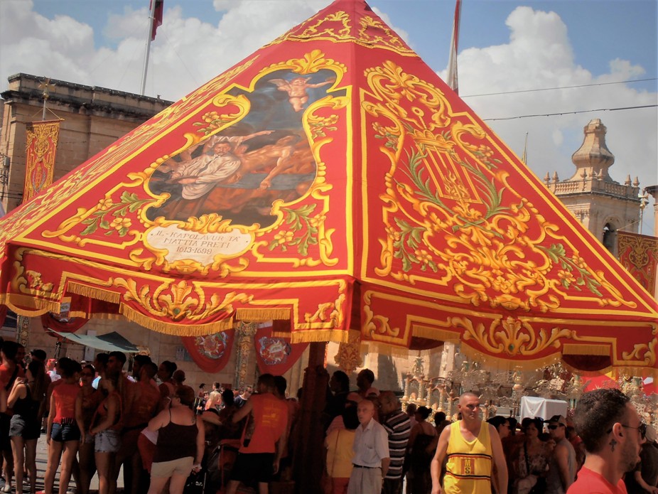 SORPRIŻA Nom li dan l-aħħar snin beda jintuża biex jirriferi għal xi biċċa xogħol ġdida li tinħadem apposta għall-festa. Dan l-oġġett jista’ jkun xi umbrellun kbir, xi mrewħa jew bandalora, li kollha jkun fihom xogħol artiġjanali u ta’ preġju.