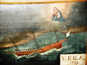 EX VOTO Frażi bil-Lat. li tfisser: ‘skont il-wegħda’, rif. għar-rigal ta’ rikonoxximent u ringrazzjament lil xi qaddis, iżda l-aktar lill-Madonna, wara li l-persuna tkun qalgħet grazzja għat-talba tagħha. Bosta drabi l-ex voto jikkonsisti f’xi pittura li turi l-periklu li dak li jkun ikun ħeles minnu, jew xi oġġett li jissimbolizza l-marda jew kundizzjoni tal-pazjent. Jeżistu f’Malta mijiet jekk mhux eluf ta’ ex votos imxerrda f’diversi knejjes u santwarji. Fuq il-pitturi insibu l-ittri V.F.G.A. li bil-Latin ifissru, Votum Fecit, Gratiam Accepit – ‘Il-wegħda saret u l-grazzja milqugħa.’