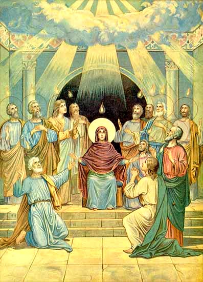 ‘[…] Meta wasal jum Għid il-Ħamsin, huma kienu lkoll flimkien f’post wieħed. F’daqqa waħda ġie mis-sema ħoss bħal ta’ riħ qawwi, u mela d-dar kollha fejn kienu qegħdin. U dehrulhom ilsna qishom tan-nar, li tqassmu u qagħdu fuq kull wieħed minnhom. Imtlew ilkoll bl-Ispirtu s-Santu u bdew jitkellmu b’ilsna oħra, skont ma l-Ispirtu kien jagħtihom li jitkellmu […]’ (Atti 2. 1-31)